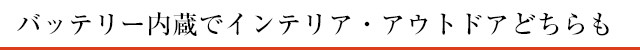 お好みのシーンに合わせてアウトドア照明としても、インテリア照明としても利用できる二刀流のLED照明器具となっています。