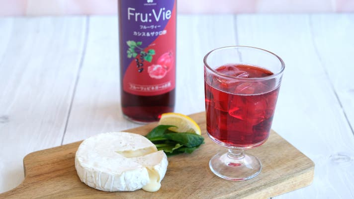 濃厚でクリーミーなカマンベールチーズの味わいを、Fru:Vie(フルーヴィ―) カシス&ザクロ酢の爽やかな酸味で口の中をサッパリさせます。それは、チーズの風味をよりクリアに感じられ、チーズの甘味も感じてしまうほど。