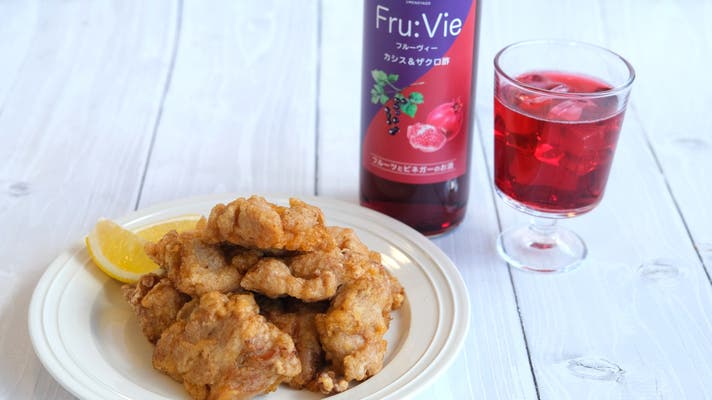 唐揚げによって口の中に残った脂っぽさをFru:Vie(フルーヴィ―) カシス&ザクロ酢の酸味が中和し、次のひと口がより美味しく感じられます。