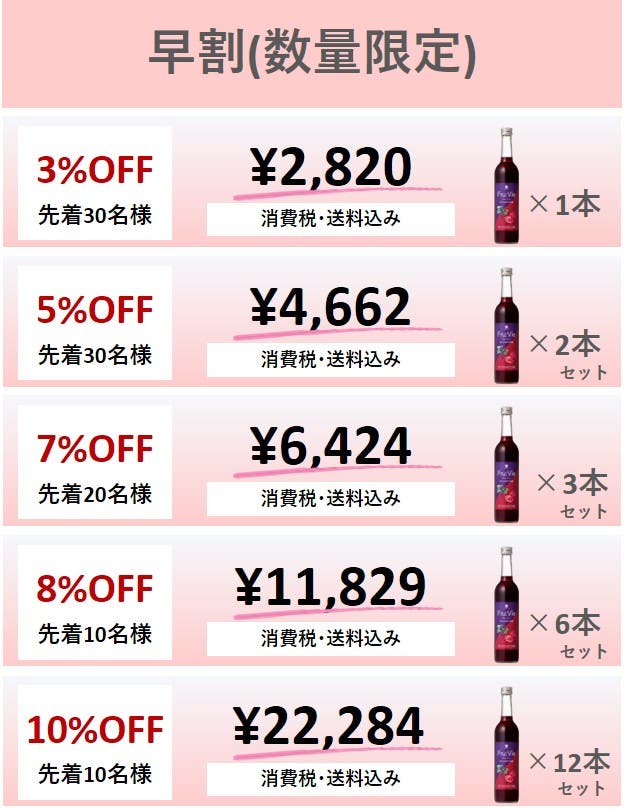 商品代21,384円(一般販売予定価格1,980円の10%OFF×12本セット)+送料900円
