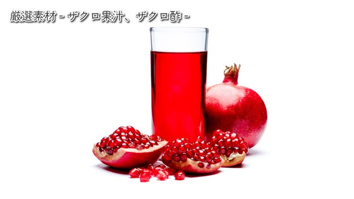- ザクロ果汁とザクロ酢に、カシス果汁をブレンドした果実感あふれる味わい