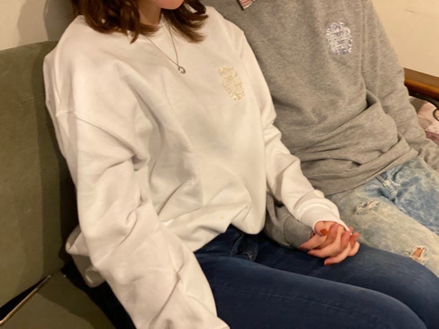 ※男性用がグレー、女性用が白の色のトレーナーとなっているため、同性の色同士で組み合わせたセット販売は行っていません。