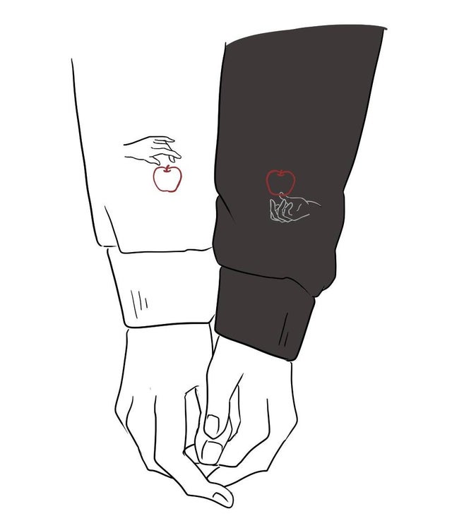胸元と袖口にアダムとイブを想起させるような