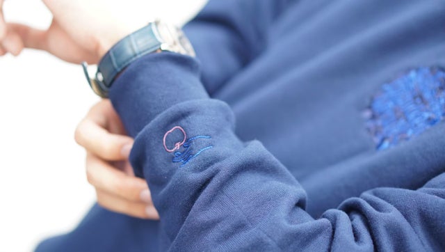 周りには気づかれにくい袖の位置にした刺繍。着ている自分たちだけがお揃いだと実感できます。そんな小さな特別感のあるデザインにこだわりました。