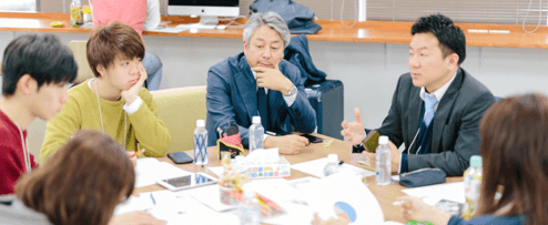 (↑コロナ禍以前のイベントの様子/社会人と学生が一緒にケーススタディに取り組んでいます。)