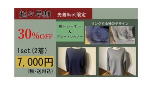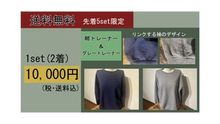 ※男性用がグレー、女性用が紺の色のトレーナーとなっているため、同性の色同士で組み合わせたセット販売は行っていません。