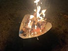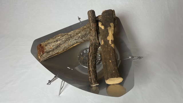 フラスタムで最も大きい火床です。収納はA4サイズ(350mm×250mm)と小型ですが、45㎝の薪が焚き火台から出ること無く収まります。