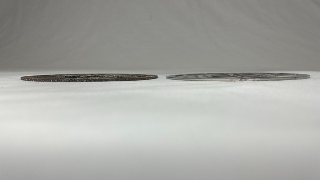 写真左のロストルはおよそ100時間程度使い込んだ物ですが、右の新品と比べて中央部に1㎜程度の盛り上がりが見られるのみで、ロック機構に必要な外周部分に歪みは見られません。