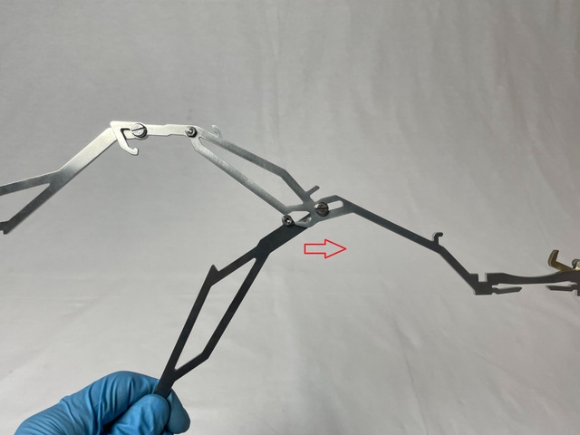 同様に3本目のフレームも組み合わせ、最後に真鍮部品でロックします。