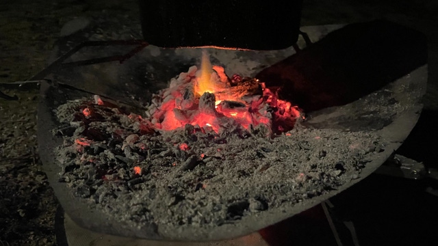 熾火を早く燃焼させたい場合は下蓋を完全に外し、熾火をドーナツ状にすると効率良く燃やす事が出来ます。