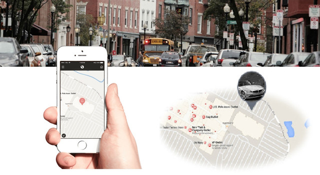広い駐車場に車を止めるとき、車にMYNTを置いておけば、車の駐車した場所がマップに記録されるので、迷わず車まで戻ってくることができます。