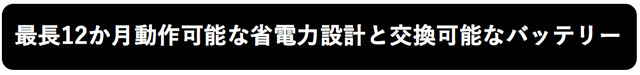 省電力設計により連続待ち受けが最大12か月のロングライフを実現しました。