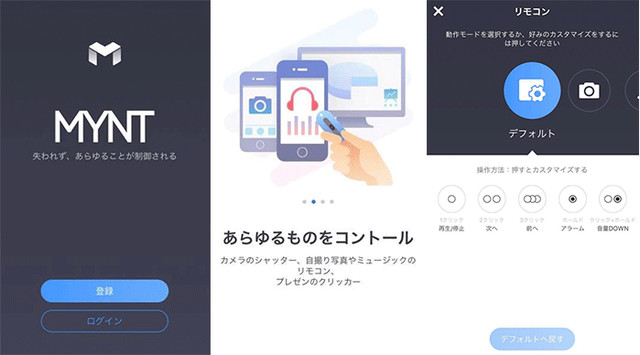 MYNTは、単なる忘れ物防止ツールではありません。Bluetooth通信を利用し様々な機器と繋げることで、多機能リモコンとしても使えます。