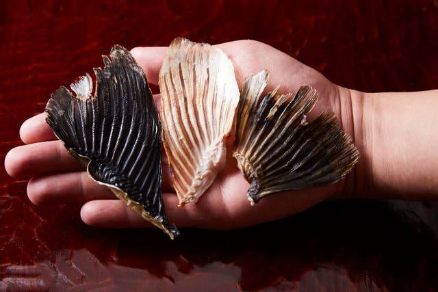 特大サイズのひれで作られるひれ酒はもちろんこちらでは冷やしひれ酒も楽しめる。