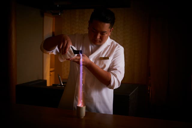 包丁を入れた瞬間芳醇な松茸の突き抜ける香りがカウンターを包み込む