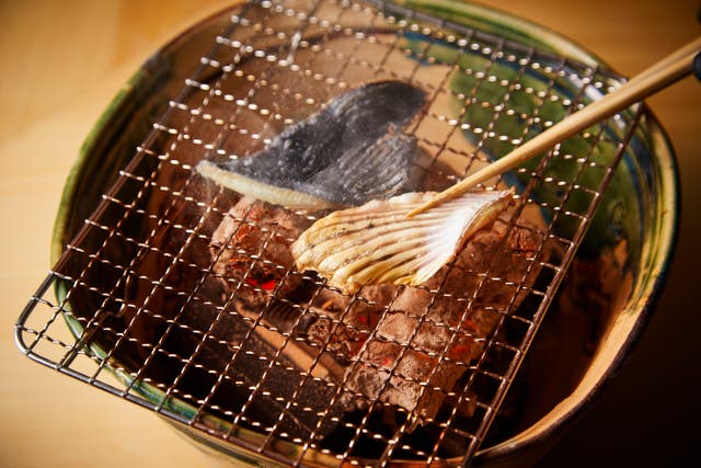 炭火で香ばしく焼かれるひれ