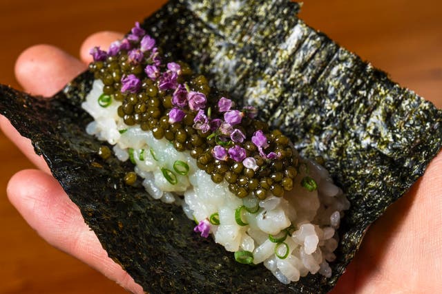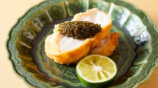 赤酢のしゃりと刻みふぐ キャビアの手巻き寿司