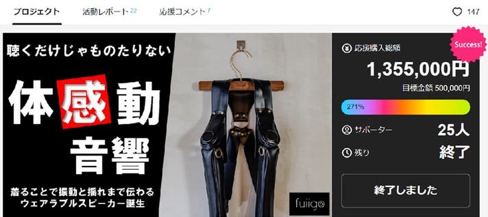 氷川音響研究所では、明日への活力につながるような感動の実現を目指し、オーディオ製品の開発に日々取り組んでおります。そして、2024年に、ウェアラブルスピーカーfuiigo(フイーゴ)をマクアケにて発表し、成功を収めることができました。