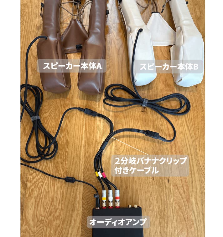 本体スピーカー×1+2分岐のバナナプラグ付きケーブル×1