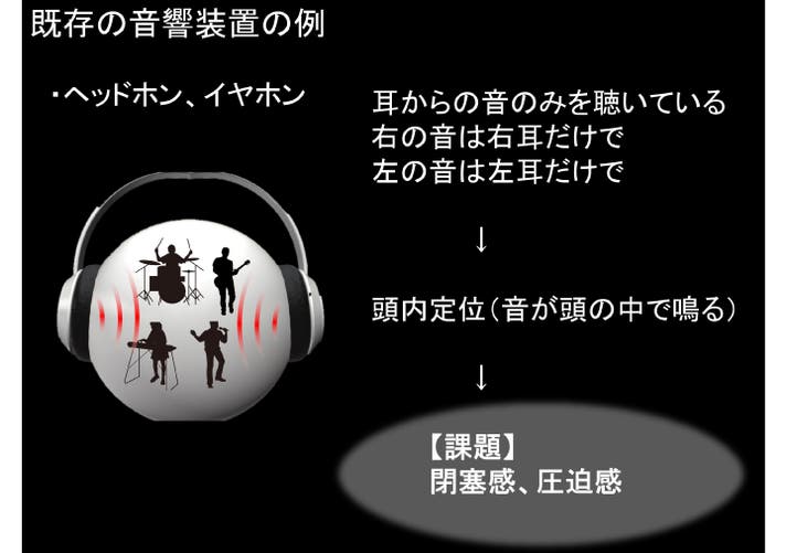 それでは、ヘッドホンを使ったらどうでしょう? 周辺への迷惑をかけることなく十分に大きな音を聴くことが出来ます。しかし、頭内に定位する音を聴くので、閉塞感や圧迫感から、長い時間楽しむことは難しいと感じておられる方も多いと思います。