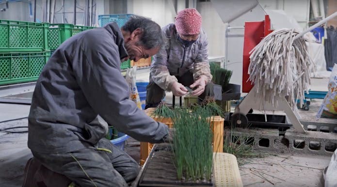 「い草」の栽培は、非常に手間と時間がかかる農業です。「い草」の収穫には土や苗作りから含めると、約2年かかり、真冬に植付け、真夏に収穫があり、い草栽培は大変な重労働です。高齢化のほか、「い草」の栽培には約1年6か月の時間と細やかな管理が必要となり、その手間と労力の多さが、農家の減少を招く要因となっています。
