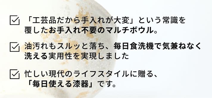 「Makuake(マクアケ)」は、実行者の想いを応援購入によって実現するアタラシイものやサービスのプラットフォームです。このページは、 プロダクトカテゴリの 「毎日の食卓に日本の伝統技術を。お手入れ不要の漆マルチボウル|食洗機対応」プロジェクト詳細ページです。