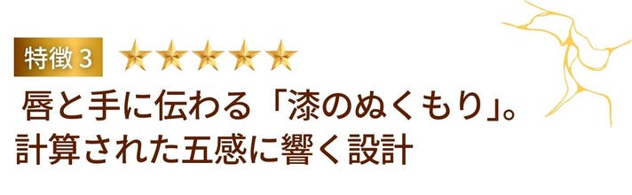 ・伝統工芸ならではの「安定感」と漆の「優しさ」を併せ持ち、毎日心地よくお使いいただけます。