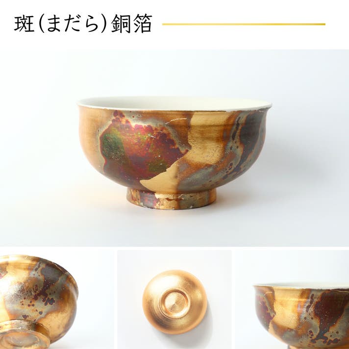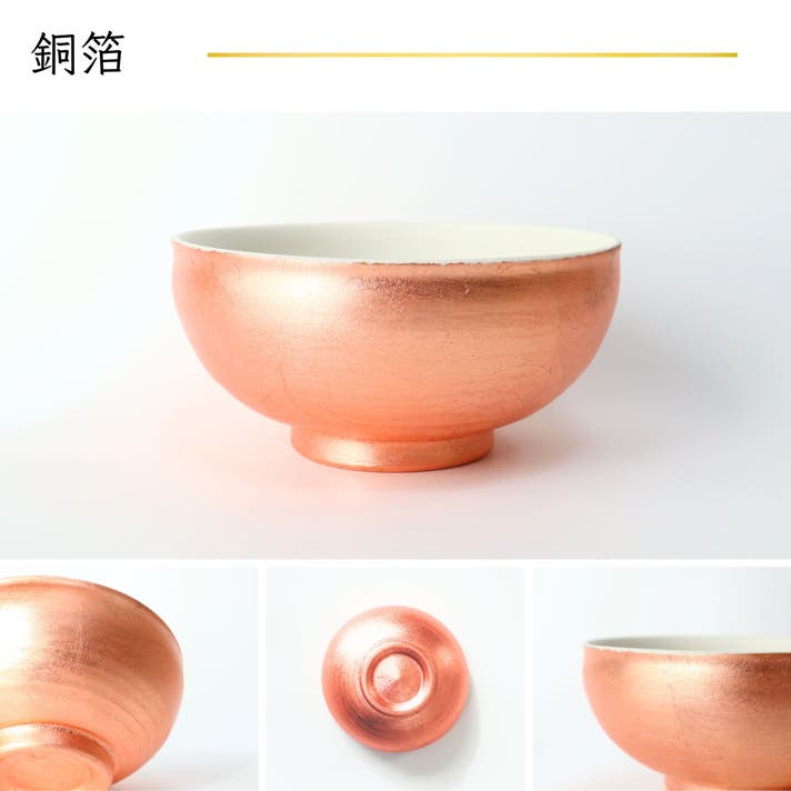 箔のわずかなムラや穏やかな色調が、器に奥行きと個性を与え、どれ一つとして同じもののない、時代を超えて愛される一点ものとしての存在感を生み出しています。
