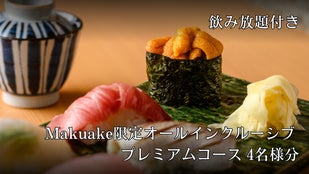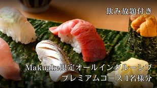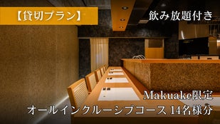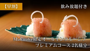 この度は、新たなお客さまとの出会いを求め、まずは一度お楽しみいただけるよう、日本酒などドリンクが飲み放題で楽しめる、Makuake限定オールインクルーシブコースと、〆に肉鮨やマグロ、イクラやカワハギの肝を使ったお寿司を提供するMakuake限定オールインクルーシブプレミアムコースを特別価格でご用意しました。