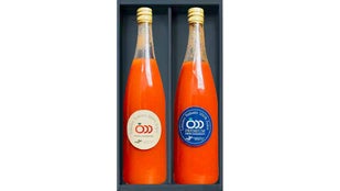 右:プレミアムトマトジュース。濃厚でとろっとした液状。