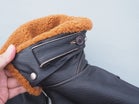 G-1フライトジャケットの一般的なアウトポケットは、フラップ付きのパッチポケットが多いですが、利便性を追求して横からも手が入るハンドウォーマー仕様のポケットも追加。