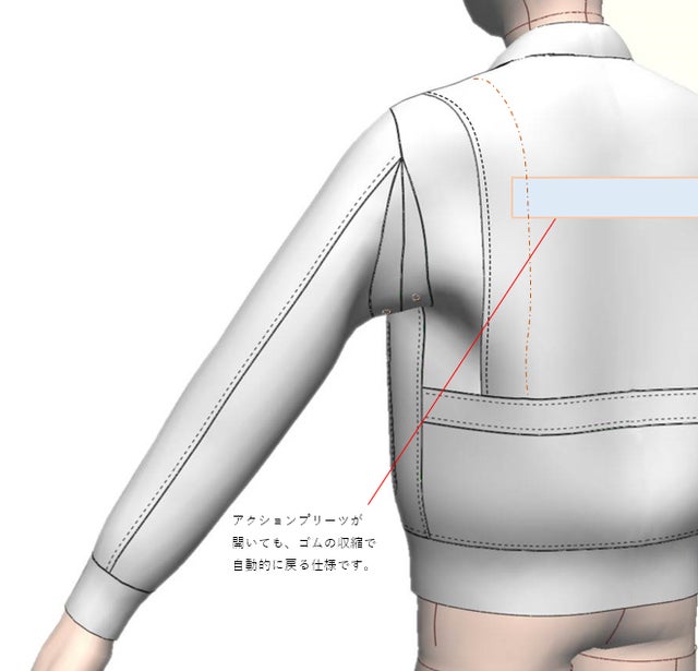 オリジナルのデザインを踏襲して、背中にはアクションプリーツを採用しました。