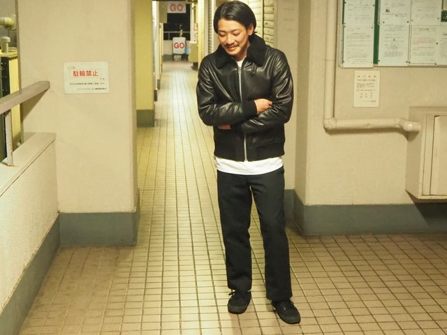 MODEL 178cm / 72kg Lsize BKアニリン染めレザー×c/#BK ボア