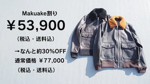 完成した製品 × 1着 【Makuake割り】 30%OFF→ 53900円(税込・送料込) 本体価格77,000円(税込・送料込)