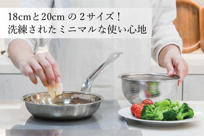 前回1番ミニマルだった22cmと比べても18cm/20cmとよりミニマルになり、さらに軽量化!鉄製フライパンだとつかれてしまうところを、新しい2サイズはさらに軽やかな使い心地を実現しております。