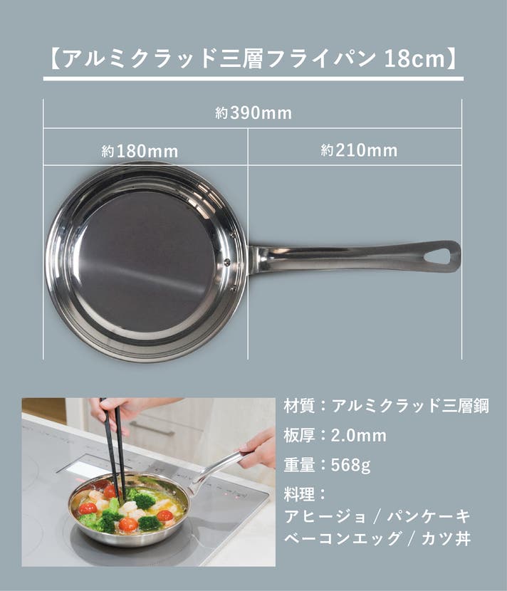 「アルミクラッド三層フライパン(18cm)」