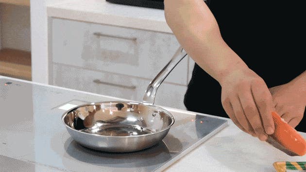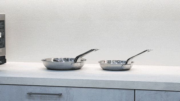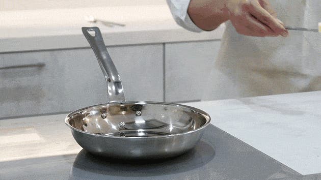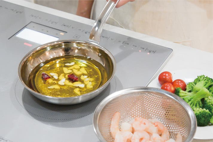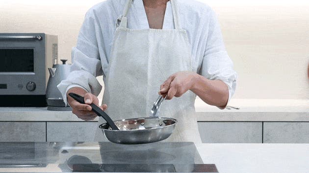 洗練されたステンレスの質感は、まるで本場イタリアの厨房で使われているような佇まい。そんなプロフェッショナルな佇まいを持つ、無駄のないシンプルなフライパンを、ご家庭でも気軽にお楽しみいただけます。