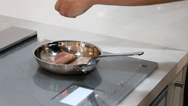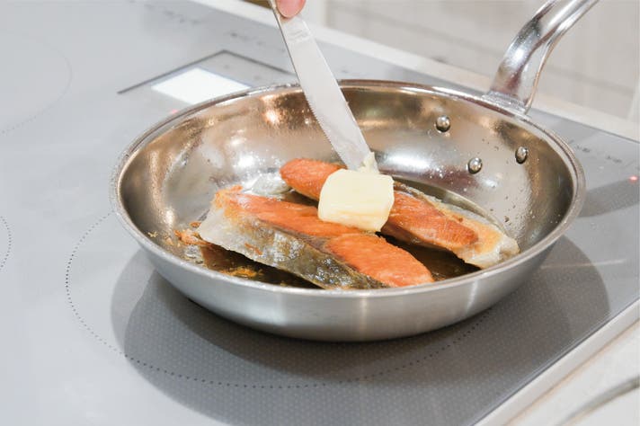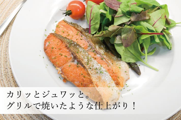 鮭の切り身が2切れほどよく収まるサイズ感で、熱効率、熱伝導で熱ムラがないため皮目までカリッと焼くことができます。