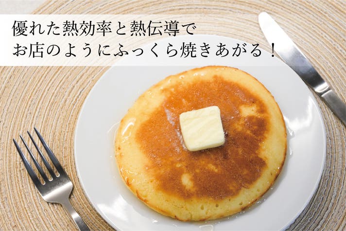 両面焼けたら完成です!「アルミクラッド三層鋼」の優れた熱効率、熱伝導で熱ムラなく焼けるのでふっくらと焼き上がります。