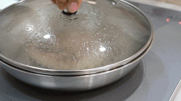 魚ときたらお肉も食べたいということで最後はハンバーグ。優れた熱効率、熱伝導でカリッと焼いて、蒸し焼きにすれば、ふっくら肉汁溢れるハンバーグが作れます!