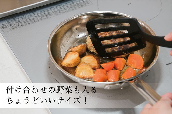 一般的な鉄のフライパンは、油膜を育てる“シーズニング”が必要で洗剤の使用が避けられがちですが、このフライパンはステンレス素材なので洗剤でしっかり洗っても大丈夫。