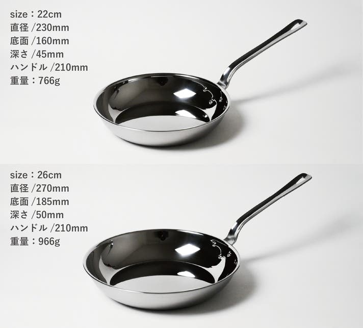 ミニマルな2サイズでも様々な料理で使用いただけます!使用の際には予熱をしっかりすることで、末長く使用いただけますのでお試しください。