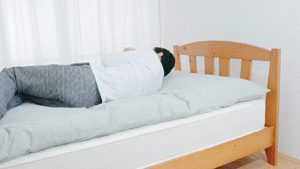 局所的に強い体圧がかかっている状態で負担のかかった寝姿勢となっています。