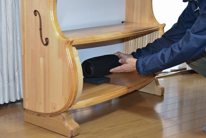 お手持ちのスピーカーを棚に置くだけで、