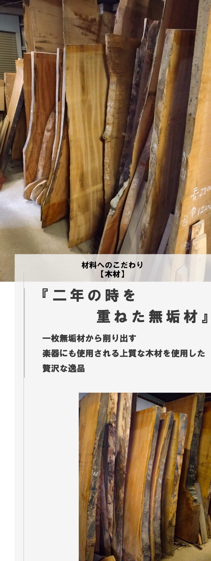 私たちは、伊勢神宮の式年遷宮に奉納される御神木の産地として知られる岐阜県中津川市で、事業を展開しています。木材への深い敬意と、地域に根ざした技術を大切にしながら、音響家具にふさわしい高品質な素材の提供を続けております。