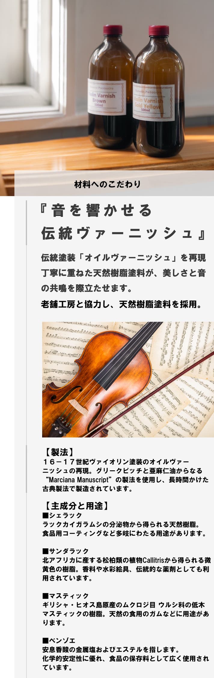 一つひとつの個体に耳を傾け、実際に音を聴きながら微調整する、大量生産にはない繊細で妥協のない工程を経て完成します。