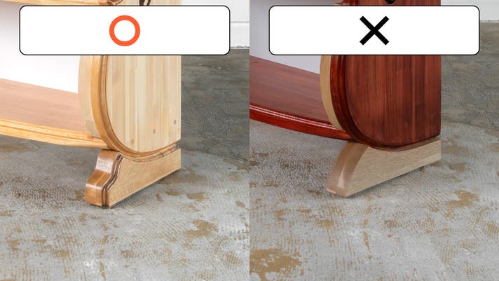 台座の脚部分につきまして下記の画像の『〇』で統一とさせていただきます。