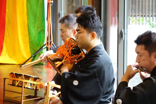 お囃子方の迫力の演奏。彼らの講話は佐久間氏に負けず劣らず興味深い。