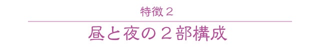 昼と夜の2回公演で構成されるため、それぞれ違った雰囲気を味わっていただくことができます。