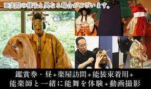 【鑑賞券・昼】+楽屋訪問+能装束着用+能楽師と一緒に能舞を体験+動画撮影etc.